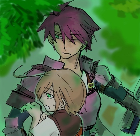 レオンとアリルです。レオンがなんか細いですが。場所は多分樹海の中でしょう。いつものごとく助けてあげたというか、そんな感じだと思います