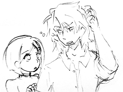 ・ピンどめかわいい! 別カラーも可愛い! あと髭メディの髪が! くくってない!! ラフが!!!