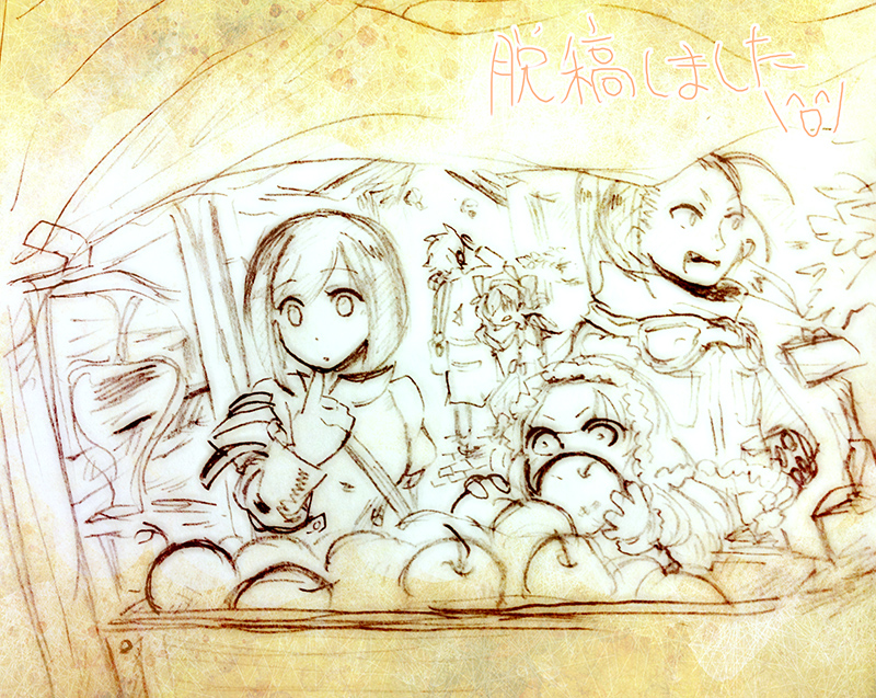つづきから脱稿の喜びから思わず描いてたもの 原稿とは全く関係なく、わたしが4やりたいから4面子です