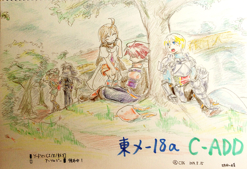 つづきから夏コミの看板です。相棒に「お前もっとソドソロ頒布の文字でかく書けよ」と怒られましたが、字を書いたのは絵を描いた後やったんや…