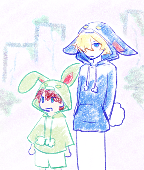 さすがにおっさんにうさ耳パーカーはないわと息子に着てもらったもの。