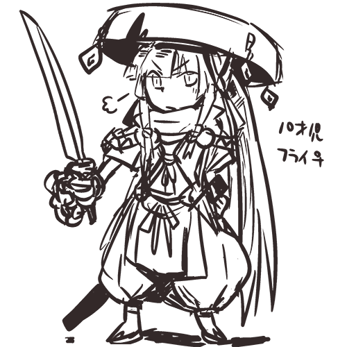 未投稿絵。髪がギリギリ地面に付かないくらい