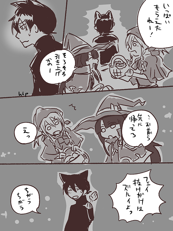 ハロウィンパーティでにぎやかな一角に、どう見てもピーターパンの帽子じゃないピーターパンとどす黒いオーラのティンカーベルからお菓子をもらう。