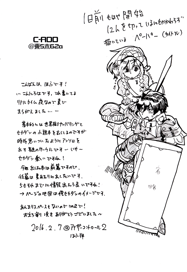 春は…特に何か出るか分かりませんが、出るなら5月末にある関西オールジャンルかなーと思ってます。まあしばらく、のんべんたらりとやろうかなーー