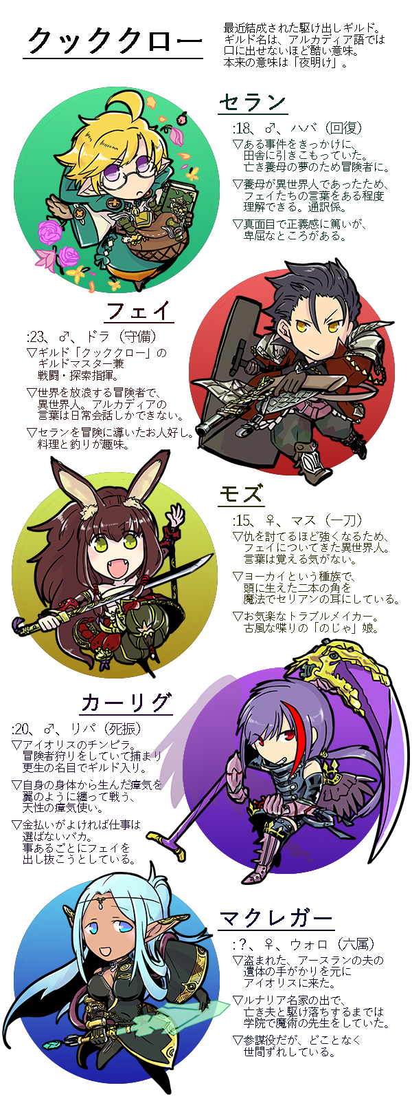 夏のイベントで冊子にはしたんですが、せかごで使用しているキャラの設定を簡易にまとめたものを置いておきます。