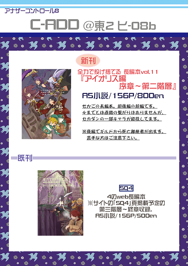 4は後編の残り状況を見て、前編を再版するか決めます(今回は前編はありません)