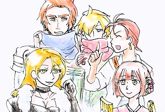 そんなわけで、唐突に描きたくなったヴァルハラ・ギルドのみなさん。塗りまで全部アナログだけどいじったら何か妙なのものに加工されたよ……